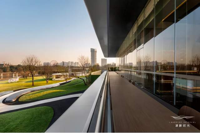 红线内项目占地约65亩,容积率仅1.28,为打通生态脉络,朗基牵头打造占地约250亩的滨河绿地,再通过江安河/府河与6000亩南湖公园串联融合,加上1300米的滨河健康绿道,建筑、公园、河、湖形成有机整体。