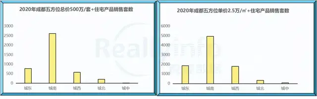 统计显示,2020年城南总价500万+与单价2.5万/㎡+住宅产品备案成交数据分别为2618套、4944套,在成都五方位属于领跑水平。