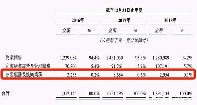 比如,奥山主打冰雪概念,冰雪+地产双轮驱动,但2016年到2018年,奥山冰雪运动及娱乐业务的收入分别为225.5万元、868.4万元和295.4万元,仅为总营收的0.17%、0.56%和0.16%。