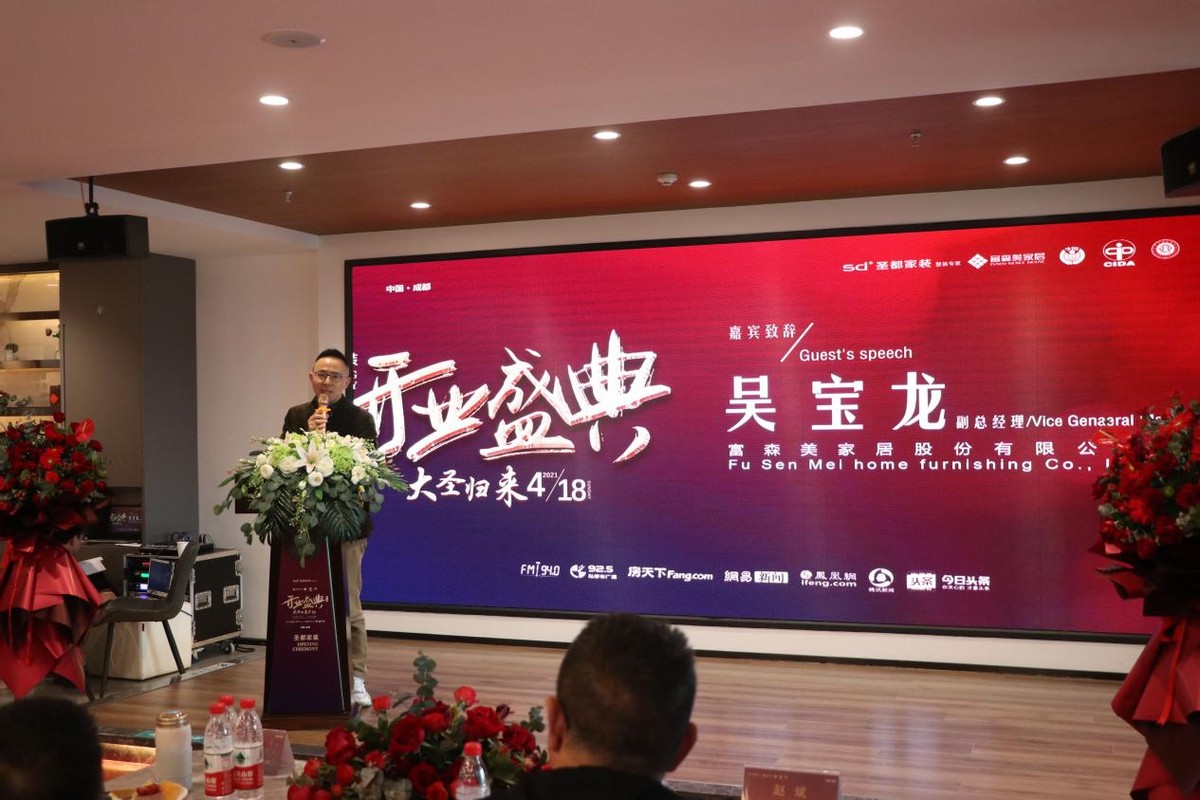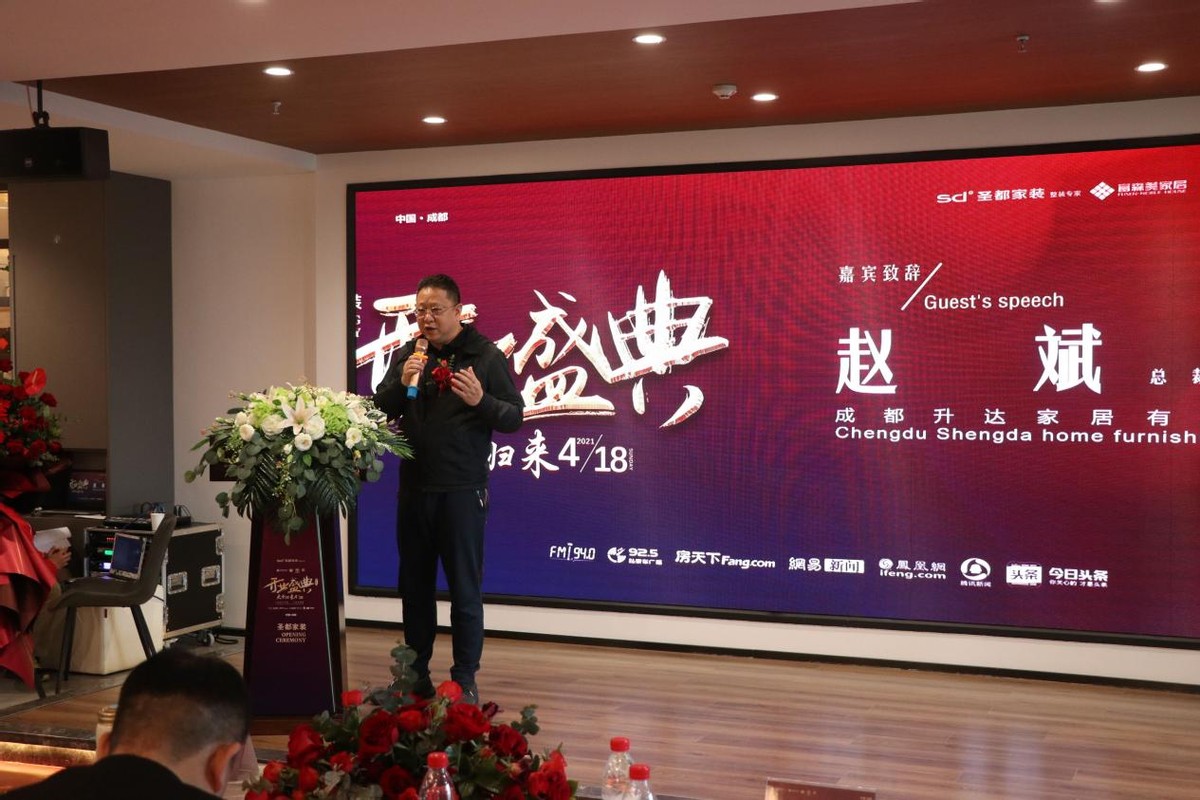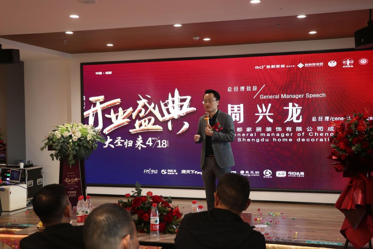 仪式最后,圣都家居装饰有限公司成都分公司总经理周兴龙上台致辞,周总首先对今日到场嘉宾表达了最深切的感谢,正是因为有来自社会各界的大力支持与信赖,成都圣都才能越来越好,并且有信心做到更好;富森店的成立,只是前进路上的一小步,未来的成都圣都将深度扎根于成都,全面辐射西南地区,把“让装修不再难,让爱温暖家”的理念带去更多的地方。
