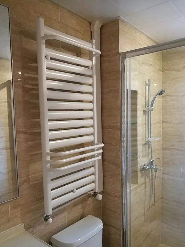 4 卫生间卫生间暖气片一般悬挂在马桶上端或者挨近洗澡的地方。卫生间暖气片一方面可以采暖,另一方面可以满足烘干毛巾、衣袜等小物件的需求。