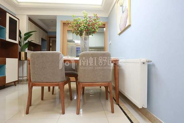 1 餐厅餐厅在空余地方放置暖气片,既不破坏装修,又能给你提供更舒适的就餐环境。