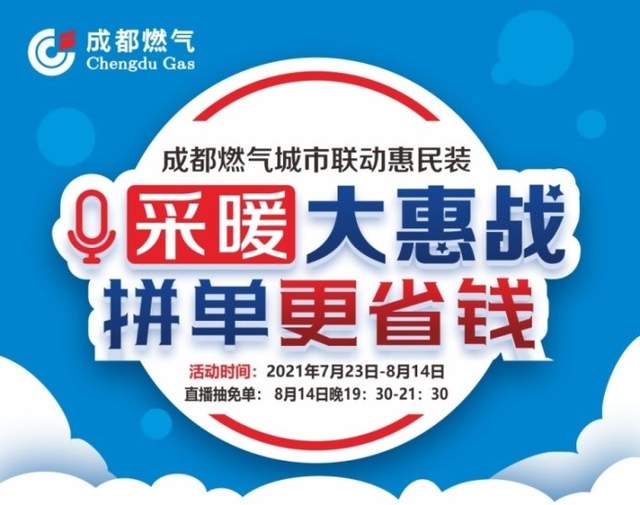 成都燃气宣布:成都燃气城市联动惠民装“采暖大惠战,拼单更省钱”活动,将于7月23日-8月14日火热进行。